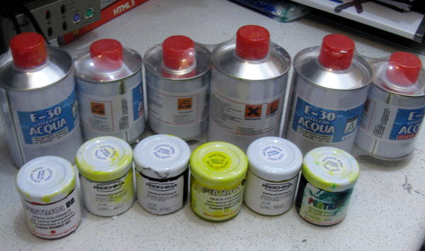 Per prima cosa ho colorato il componente A, portandolo alla trasparenza che volevo, poi aggiungendo il componente B ho corretto aggiungendo colore, poiché viene diluito anch'esso.