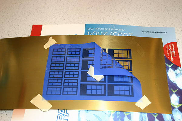 Il retro della lastra d'ottone andrà protetto dalla corrosione incollandovi del normale nastro adesivo da pacchi, in